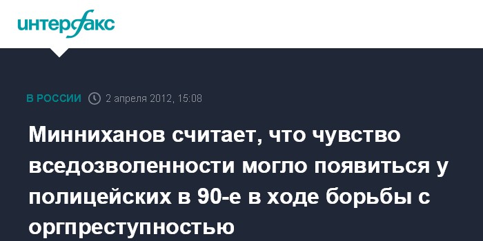 "К сожалению, то, что комиссия выявила такие факты, говорит о том, что мы ослабили внимание к этому вопросу. Очевидно, в 90-е годы, когда мы боролись с организованной преступностью, у сотрудников органов внутренних дел появилось чувство вседозволенности", - приводит пресс-служба главы республики слова Минниханова в ходе совещания по итогам проверки работы прокуратуры Татарстана под председательством заместителя Генпрокурора РФ Сергея Зайцева.