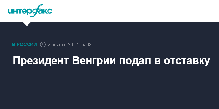Будапешт. 2 апреля. INTERFAX.RU - Президент Венгрии Пал Шмит в понедельник объявил об отставке.