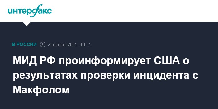 МИД РФ проинформирует США о результатах проверки инцидента с Макфолом