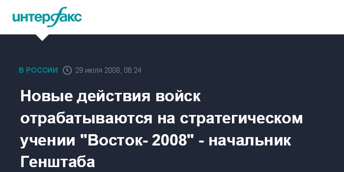 Новые действия войск отрабатываются на стратегическом учении "Восток- 2008" - начальник Генштаба