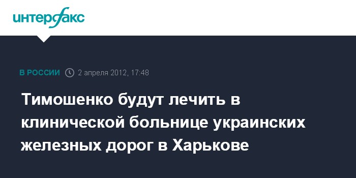 Тимошенко будут лечить в клинической больнице украинских железных дорог в Харькове