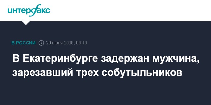 Москва. 29 июля. INTERFAX.RU - Уроженец Смоленской области Ринат Сабиров задержан в Екатеринбурге в понедельник по подозрению в убийстве трех мужчин в районе Северного автовокзала и покушении на четвертого.