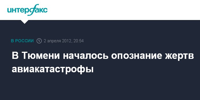 Екатеринбург. 2 апреля. INTERFAX.RU - Процедура опознания погибших при катастрофе самолета ATR-72 началась в тюменском морге, сообщили агентству "Интерфакс" в Уральском региональном центре МЧС РФ.