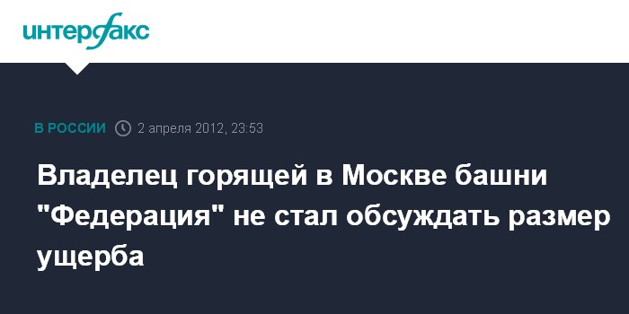 Владелец горящей в Москве башни "Федерация" не стал обсуждать размер ущерба