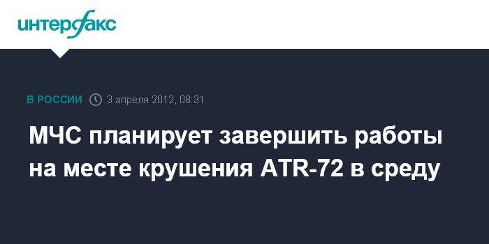 Тюмень. 3 апреля. INTERFAX.RU - Работы на месте крушения самолета ATR-72 в Тюмени планируется завершить во второй половине дня 4 апреля, сообщил агентству "Интерфакс-Урал" представитель пресс-службы регионального МЧС во вторник.