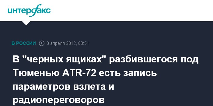 Москва. 3 апреля. ИНТЕРФАКС - Специалисты Межгосударственного авиационного комитета (МАК) установили, что в "черных ящиках" пассажирского самолета, разбившегося накануне под Тюменью, есть запись аварийного полета.