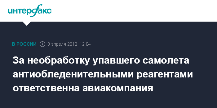 За необработку упавшего самолета антиобледенительными реагентами ответственна авиакомпания