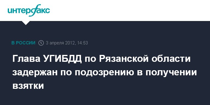 Москва. 3 апреля. INTERFAX.RU - Начальник Управления ГИБДД УМВД РФ по Рязанской области Александр Алфосов и несколько его подчиненных подозреваются во взяточничестве, сообщили в пресс-центре МВД РФ.