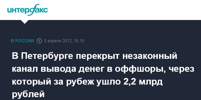 В Петербурге перекрыт незаконный канал вывода денег в оффшоры, через который за рубеж ушло 2,2 млрд рублей