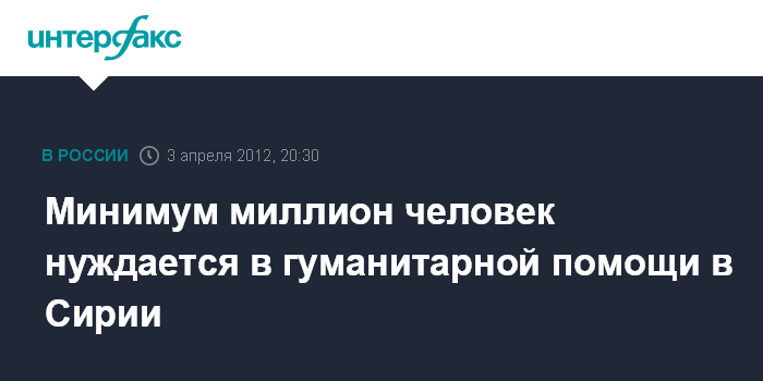 Минимум миллион человек нуждается в гуманитарной помощи в Сирии