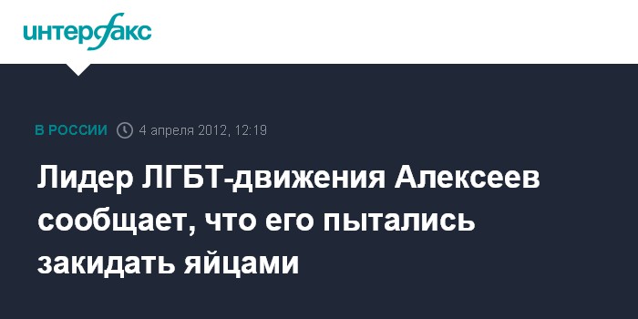 Лидер ЛГБТ-движения Алексеев сообщает, что его пытались закидать яйцами