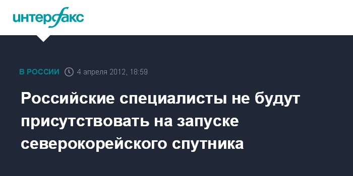 Российские специалисты не будут присутствовать на запуске северокорейского спутника