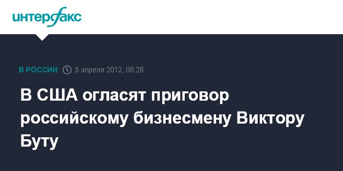 Москва. 5 апреля. INTERFAX.RU - Суд Нью-Йорка (США), как ожидается, в четверг огласит приговор российскому бизнесмену Виктору Буту, которого присяжные признали виновным в нелегальном обороте оружия и поддержке террористических организаций.