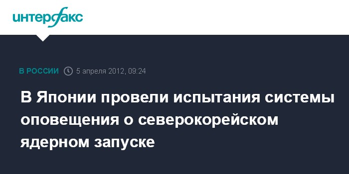 Токио. 5 апреля. INTERFAX.RU - В Японии протестировали систему оповещения, которая предупредит граждан страны об опасности в случае, если КНДР осуществит запланированный на середину апреля ракетный запуск, передает в четверг японская телекомпания NHK.