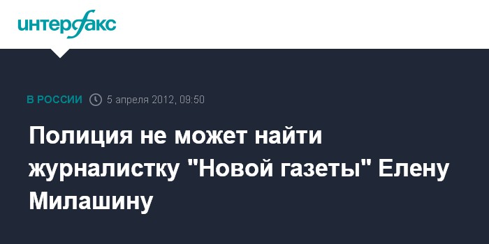 Москва. 5 апреля. INTERFAX.RU - Подмосковные полицейские пока не могут связаться с корреспондентом "Новой газеты" Еленой Милашиной, чтобы получить показания о нападении на нее в подмосковной Балашихе, сообщили "Интерфаксу" в правоохранительных органах региона.