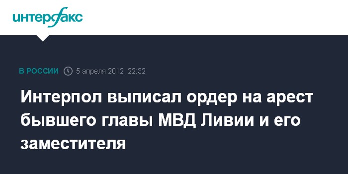 Париж. 5 апреля. INTERFAX.RU - Руководство Интерпола объявило в четверг, что выдало ордера на арест бывшего министра внутренних дел Ливии и его заместителя.