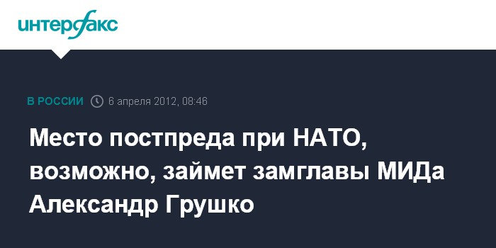 Москва. 6 апреля. INTERFAX.RU - Новым представителем РФ при НАТО будет назначен замглавы МИДа Александр Грушко, сообщает "Коммерсант" в пятницу.