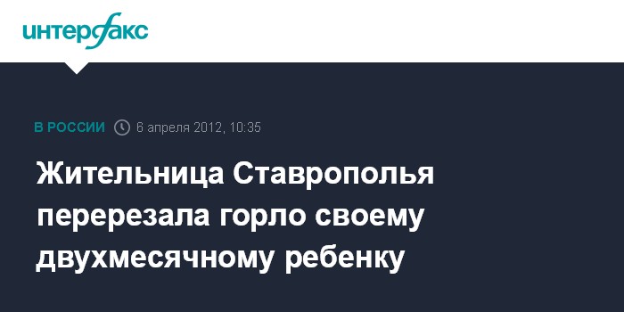 Жительница Ставрополья перерезала горло своему двухмесячному ребенку