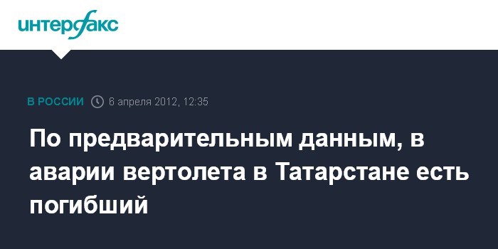 Казань. 6 апреля. INTERFAX.RU - По данным ГУ МЧС РФ по Татарстану, при крушении вертолета в Нижнекамском районе республики погиб человек.