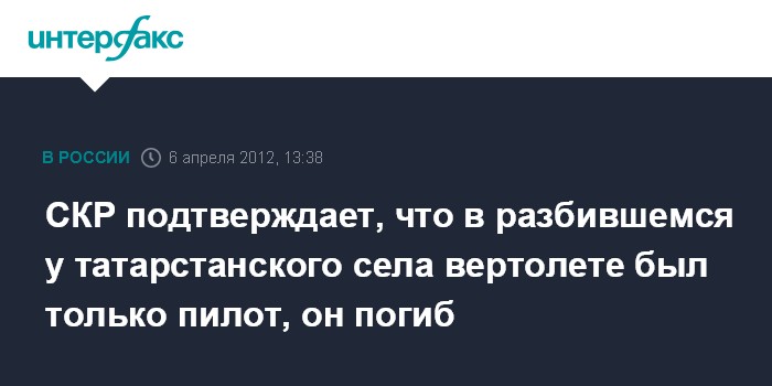 По данным комитета, в вертолете находился один пилот, он погиб.