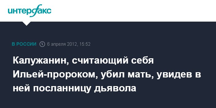 Калужанин, считающий себя Ильей-пророком, убил мать, увидев в ней посланницу дьявола