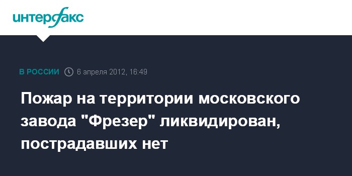 Пожар на территории московского завода "Фрезер" ликвидирован, пострадавших нет