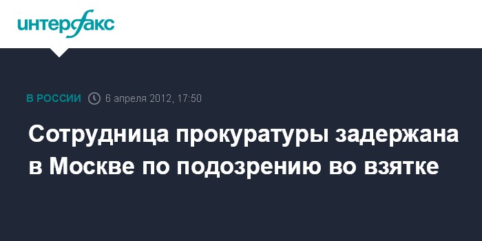Москва. 6 апреля. INTERFAX.RU - Помощник Тверского межрайонного прокурора столицы задержана в Москве по подозрению в получении взятки в 200 тыс. рублей.