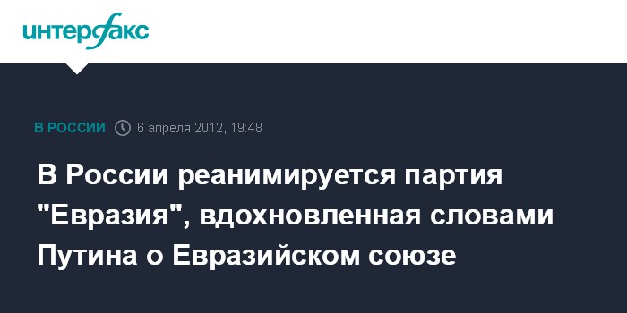 В России реанимируется партия "Евразия", вдохновленная словами Путина о Евразийском союзе