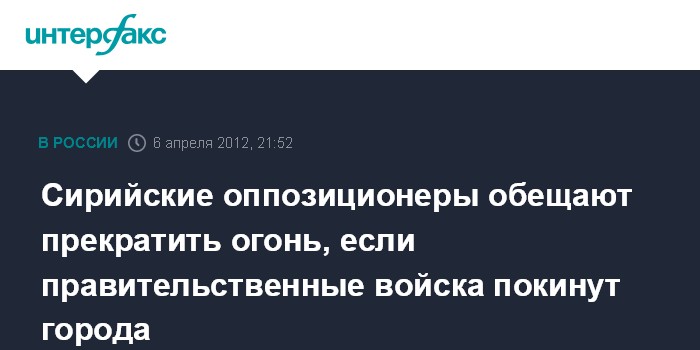 Сирийские оппозиционеры обещают прекратить огонь, если правительственные войска покинут города