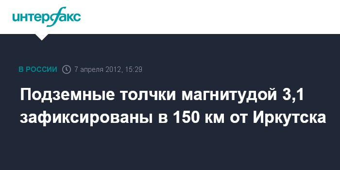 Абакан. 7 апреля. INTERFAX.RU - Подземные толчки магнитудой 3,1 зафиксированы на территории Иркутской области, сообщает пресс-служба регионального управления МЧС.