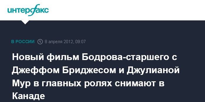 Новый фильм Бодрова-старшего с Джеффом Бриджесом и Джулианой Мур в главных ролях снимают в Канаде
