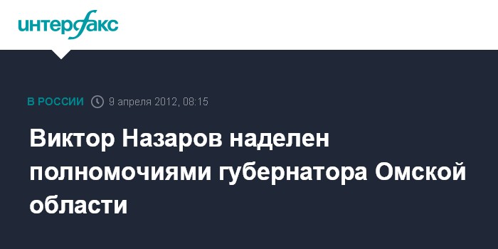Омск. 9 апреля. INTERFAX.RU - Законодательное собрание Омской области на внеочередной сессии в понедельник утвердила кандидатуру Виктора Назарова на пост губернатора, сообщили агентству "Интерфакс-Сибирь" в пресс-службе регионального парламента. В поддержку кандидатуры Назарова выступили 43 из 44 депутатов, присутствующих на заседании.