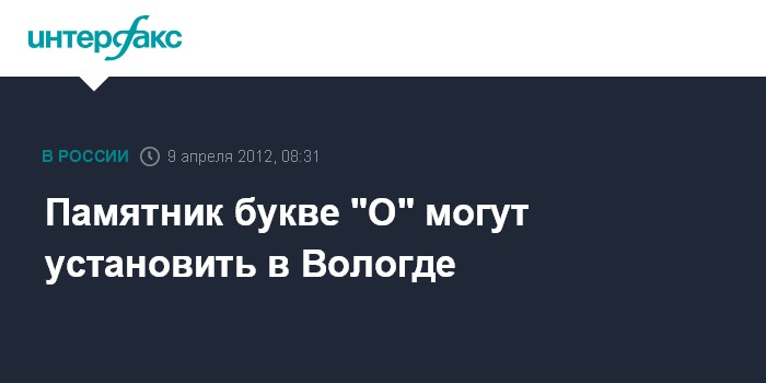 Вологда. 9 апреля. INTERFAX.RU - В Вологде этим летом может появиться памятник букве "О", сообщили "Интерфаксу" в пресс-службе региональной администрации.