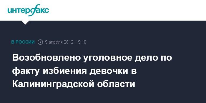 Калининград. 9 апреля. INTERFAX.RU - Следственный комитет по Калининградской области возобновил расследование уголовного дела по факту покушения на убийство девочки в городе Гусев.