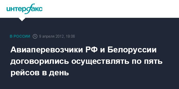 Авиаперевозчики РФ и Белоруссии договорились осуществлять по пять рейсов в день