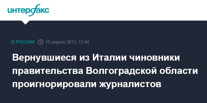 Волгоград. 10 апреля. INTERFAX.RU - Прибывшая во вторник ночью самолетом из Италии волгоградская делегация чиновников в большинстве своем старательно обходила представителей СМИ, спешно покидая аэропорт.