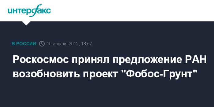 Роскосмос принял предложение РАН возобновить проект "Фобос-Грунт"