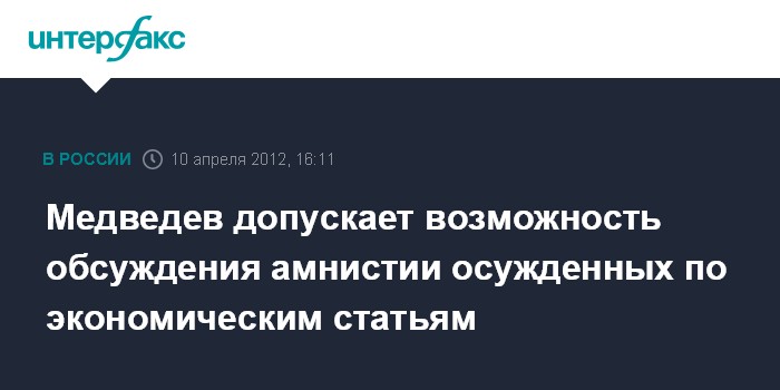 Москва. 10 апреля. INTERFAX.RU - Президент России Дмитрий Медведев считает, что можно обсудить с парламентом вопрос об амнистии в отношении осужденных за экономические преступления.