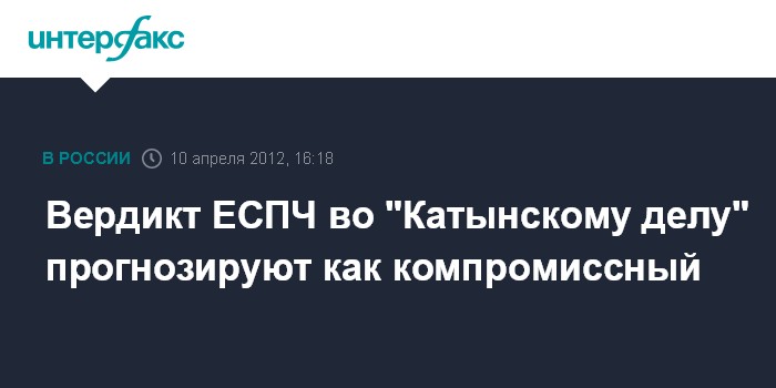 Москва. 10 апреля. INTERFAX.RU - Европейский суд по правам человека (ЕСПЧ) 16 апреля обнародует вердикт по громкому "Катынскому делу", и он будет не в пользу России, сообщил "Интерфаксу" во вторник источник, знакомый с ситуацией.