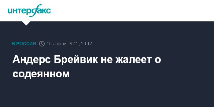 Лондон. 10 апреля. INTERFAX.RU - Норвежский террорист Андерс Брейвик намерен заявить на судебном заседании о том, что он не только не жалеет о содеянном, но даже хотел бы зайти дальше в своих намерениях, сообщает во вторник британская газета The Daily Telegraph со ссылкой на адвоката обвиняемого.