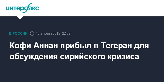 Бывший генсек ООН Аннан прибыл в Тегеран из Турции, где он посетил лагеря сирийских беженцев. Визит в Тегеран пройдет на фоне сообщений о непрекращающихся столкновениях между повстанцами и правительственной армией. Во вторник, по сообщениям активистов сирийской оппозиции, в столкновениях погибли более 30 человек.