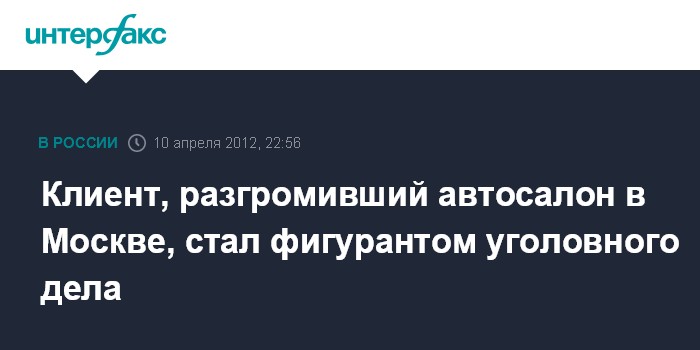 Москва. 10 апреля. INTERFAX.RU - Полиция возбудила уголовное дело по факту погрома, учиненного автолюбителем в автосалоне Nissan на Дмитровском шоссе в Москве, сообщили "Интерфаксу" в пресс-службе столичного ГУ МВД РФ.