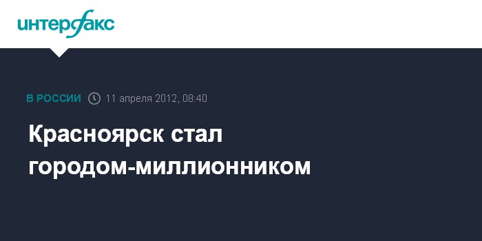 Красноярск. 11 апреля. INTERFAX.RU - В России увеличилось количество городов, где численность населения достигает миллиона: накануне появился на свет миллионный житель Красноярска.
