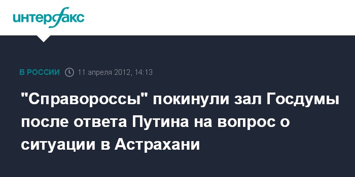 "Справороссы" покинули зал Госдумы после ответа Путина на вопрос о ситуации в Астрахани