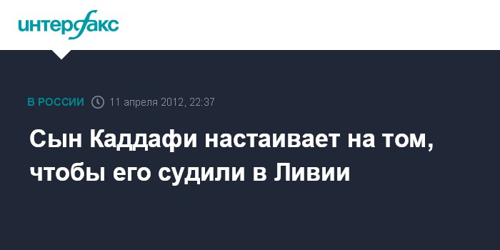 Гаага. 11 апреля. INTERFAX.RU - Сын свергнутого ливийского лидера Муамара Каддафи Сейф аль-Ислам надеется на то, что суд над ним пройдет в Ливии, говорится в опубликованном в среду докладе Международного уголовного суда (МУС).