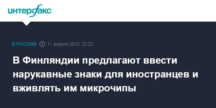В Финляндии предлагают ввести нарукавные знаки для иностранцев и вживлять им микрочипы