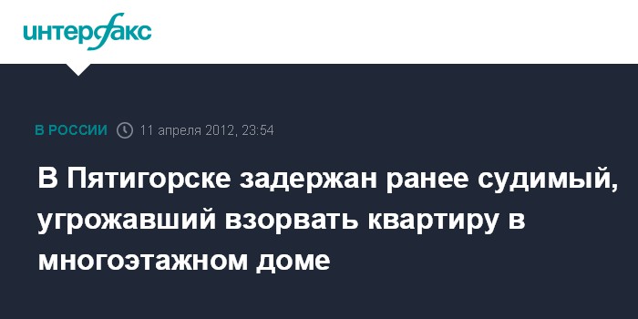 Ростов-на-Дону. 11 апреля. INTERFAX.RU - Житель Пятигорска, угрожавший по телефону взорвать квартиру, в которой он находился, задержан сотрудниками полиции, сообщили агентству "Интерфакс - Юг" в правоохранительных органах.