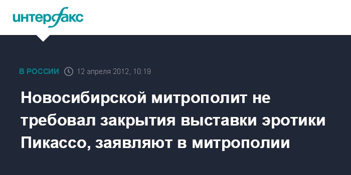 Новосибирской митрополит не требовал закрытия выставки эротики Пикассо, заявляют в митрополии