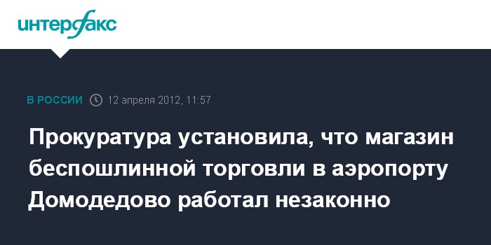 Москва. 12 апреля. INTERFAX.RU - Транспортная прокуратура Москвы добилась ареста алкогольной продукция магазина беспошлинной торговли в аэропорту Домодедово общей стоимостью свыше 40 млн рублей. Оказалось, что он работал незаконно.