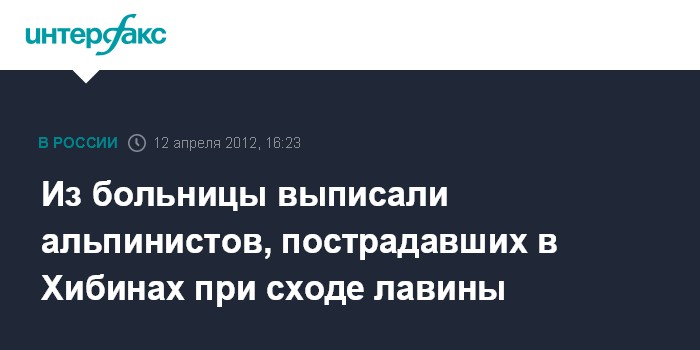Санкт-Петербург. 12 апреля. INTERFAX.RU - Пострадавших при сходе лавины в Хибинах в Мурманской области альпинистов уже выписали из больницы, сообщила в четверг пресс-служба Санкт-Петербургского государственного политехнического университета.